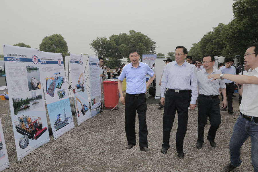 5月29日,江蘇省農(nóng)機(jī)產(chǎn)品推進(jìn)會(huì)在太倉現(xiàn)代農(nóng)業(yè)園舉行。江蘇省副省長(zhǎng)繆瑞林參觀了省水機(jī)公司水利機(jī)械產(chǎn)品推介展區(qū),對(duì)水機(jī)公司大力開發(fā)環(huán)保清淤產(chǎn)品表示贊許。